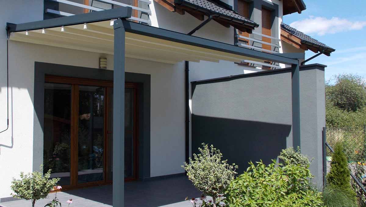 La pergola Izy est un produit à l’excellent rapport qualité prix. Son nom est évocateur : une structure sans fioritures pour un style minimaliste. Sa conception a été spécialement pensée pour un usage privé. Elle convient parfaitement à ceux qui recherchent une pergola en aluminium à toit rétractable facile à utiliser. La toiture est contrôlée manuellement, mais elle peut également être commandée grâce à l’ajout d’un moteur électrique. Ce modèle est exclusivement disponible en version murale. Le toit monopan permet un écoulement des eaux pluviales faciles vers le front de la pergola, équipée d’un système de gouttières. Les profilés en aluminium lui confèrent une apparence sobre mais la pergola adossée à toit rétractable Izy ne manque pas d’options de personnalisation. Elle peut être équipée d’un éclairage LED, de stores ou encore de radiateurs infrarouges pour en profiter en toute saison.