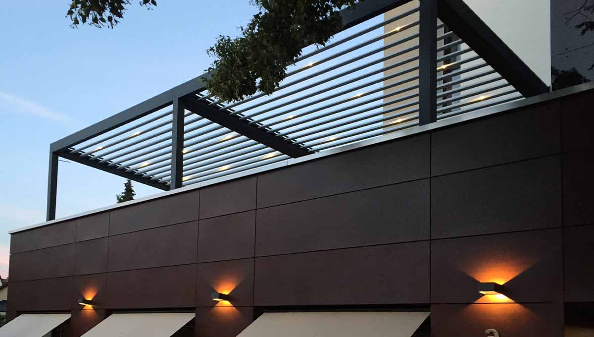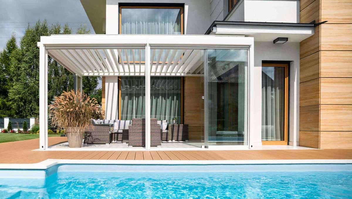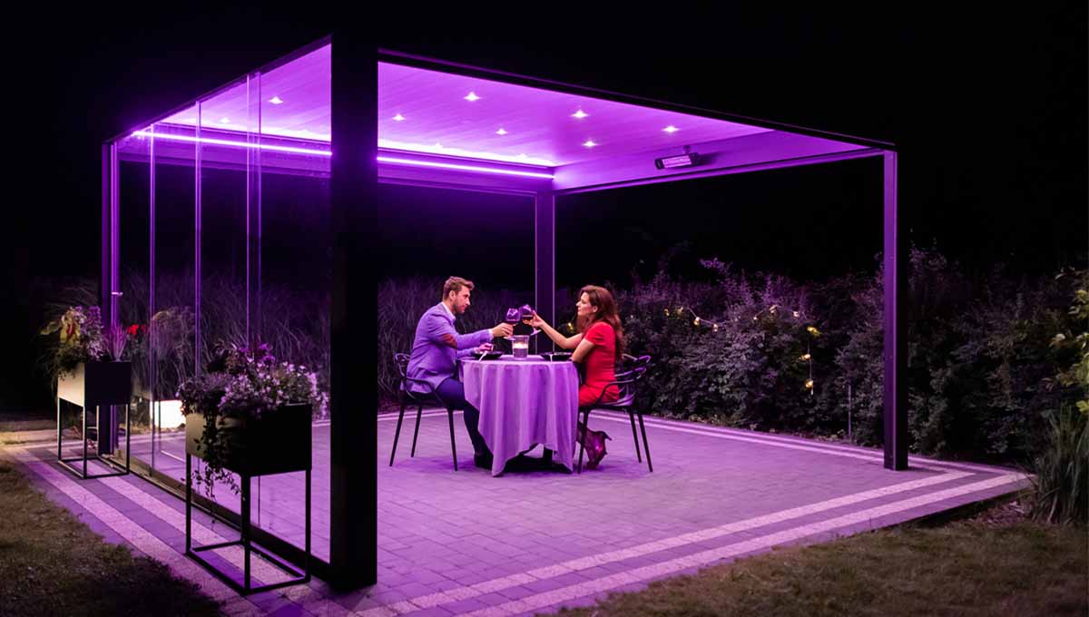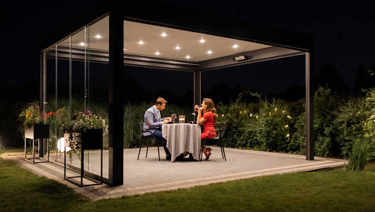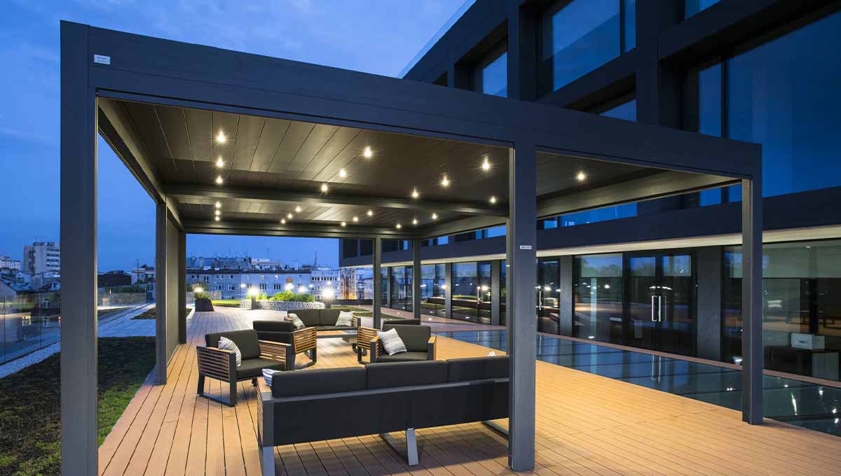 Sa structure solide résiste efficacement aux intempéries et au passage du temps. Entièrement étanche, elle reste accessible même par temps de pluie grâce aux lames orientables. Et pour en profiter encore plus, il est possible d’installer un système d’éclairage, de parois vitrées ou de stores. La pergola ne devient plus seulement un équipement dont on profite l’été, mais même lorsque le temps est plus doux.