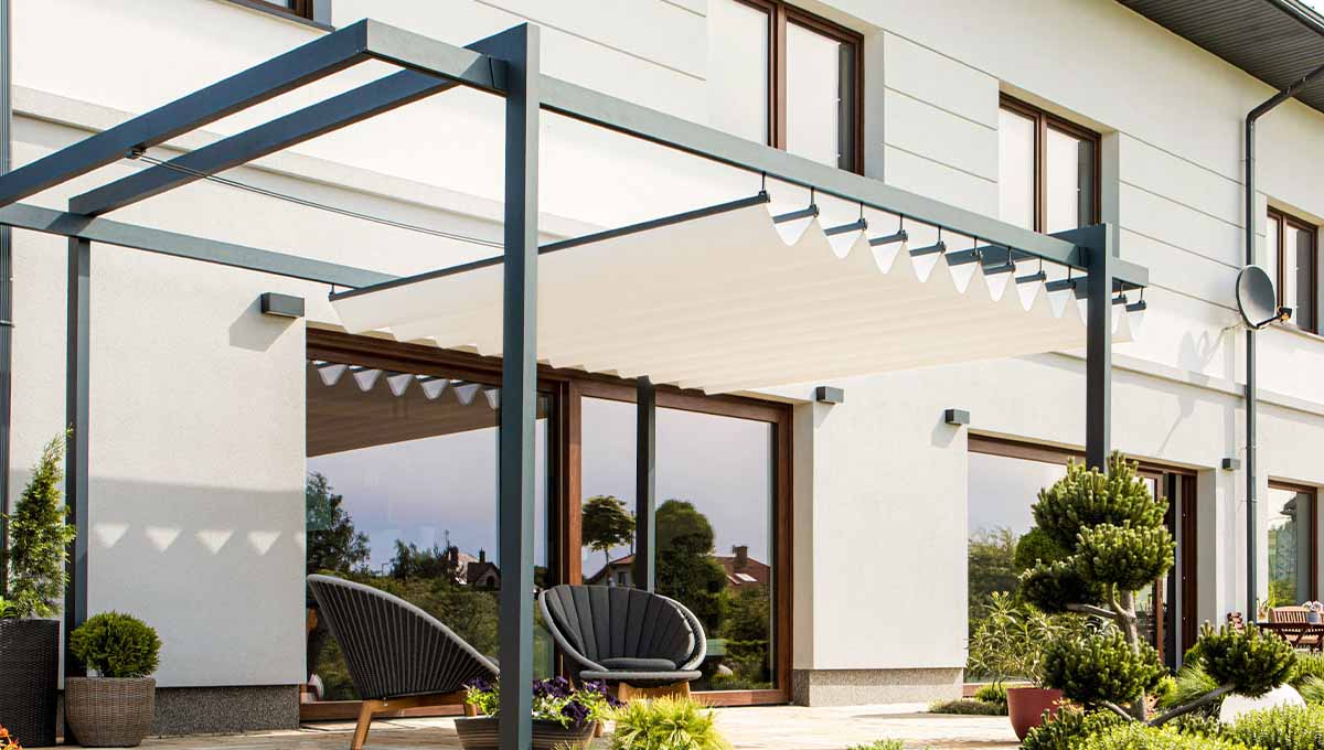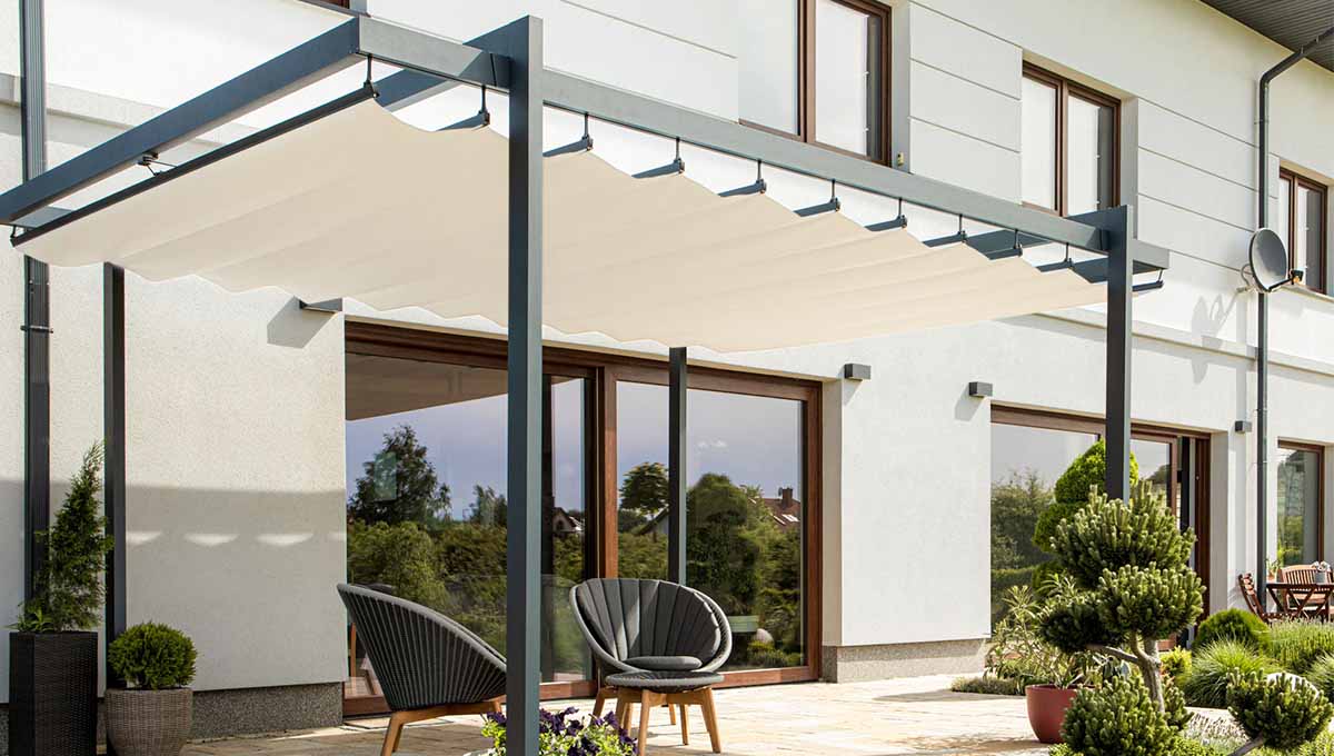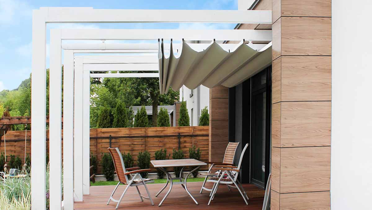 Poznaj pergolę samonośną Fala, model o prostym i współczesnym wyglądzie, który skutecznie chroni przed słońcem.